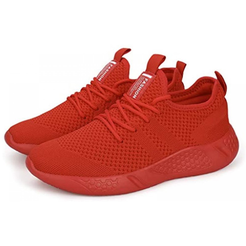 Men's Sport Gym Running Shoes Casual Lace Up Lightweight Walking Shoes Red